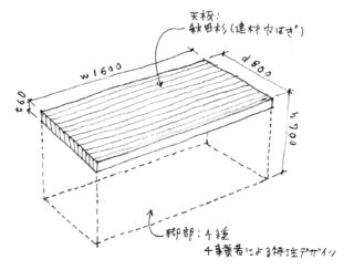 秋田杉板を縦使いに巾はぎすることで特徴的なストライプの表情を生み出した天板は、温かみがありつつも重厚な存在感を醸し出します。