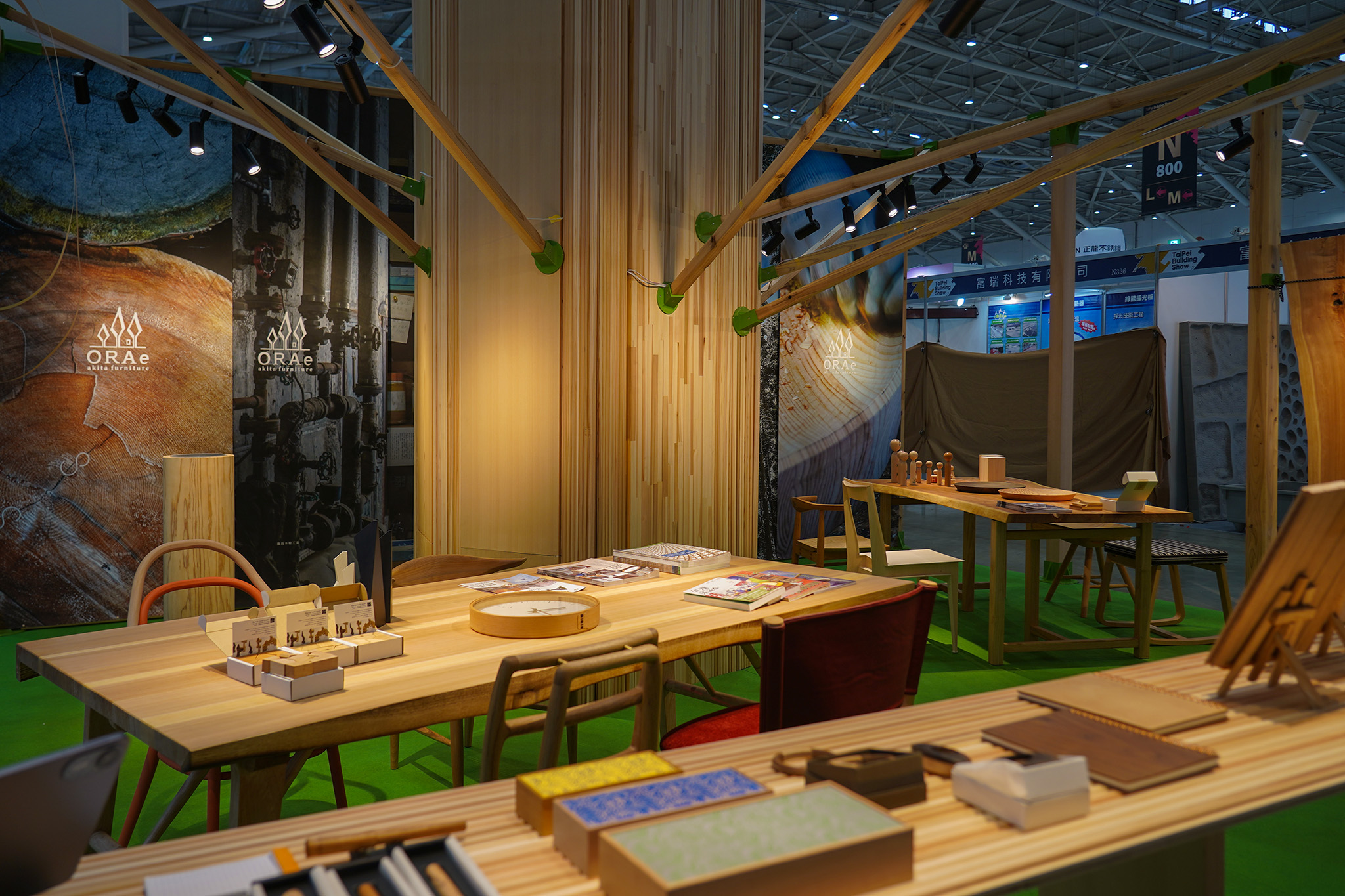 2025.12.11 「台北建築建材及び産品展2025」へのORAeアキタファニチャー 出展 12/11-14に台湾で開催される「台北建築建材及び産品展」へのORAeアキタファニチャー 出展に向けて、ORAeアキタファニチャーと秋田県木連の共同出展ブースが無事に設営完了しました。秋田の魅力ある木材や木工の製品を展示しましたが、果たして初海外でのお披露目は如何なことになるのでしょう? 開催前日が不満と期待でワクワクです!