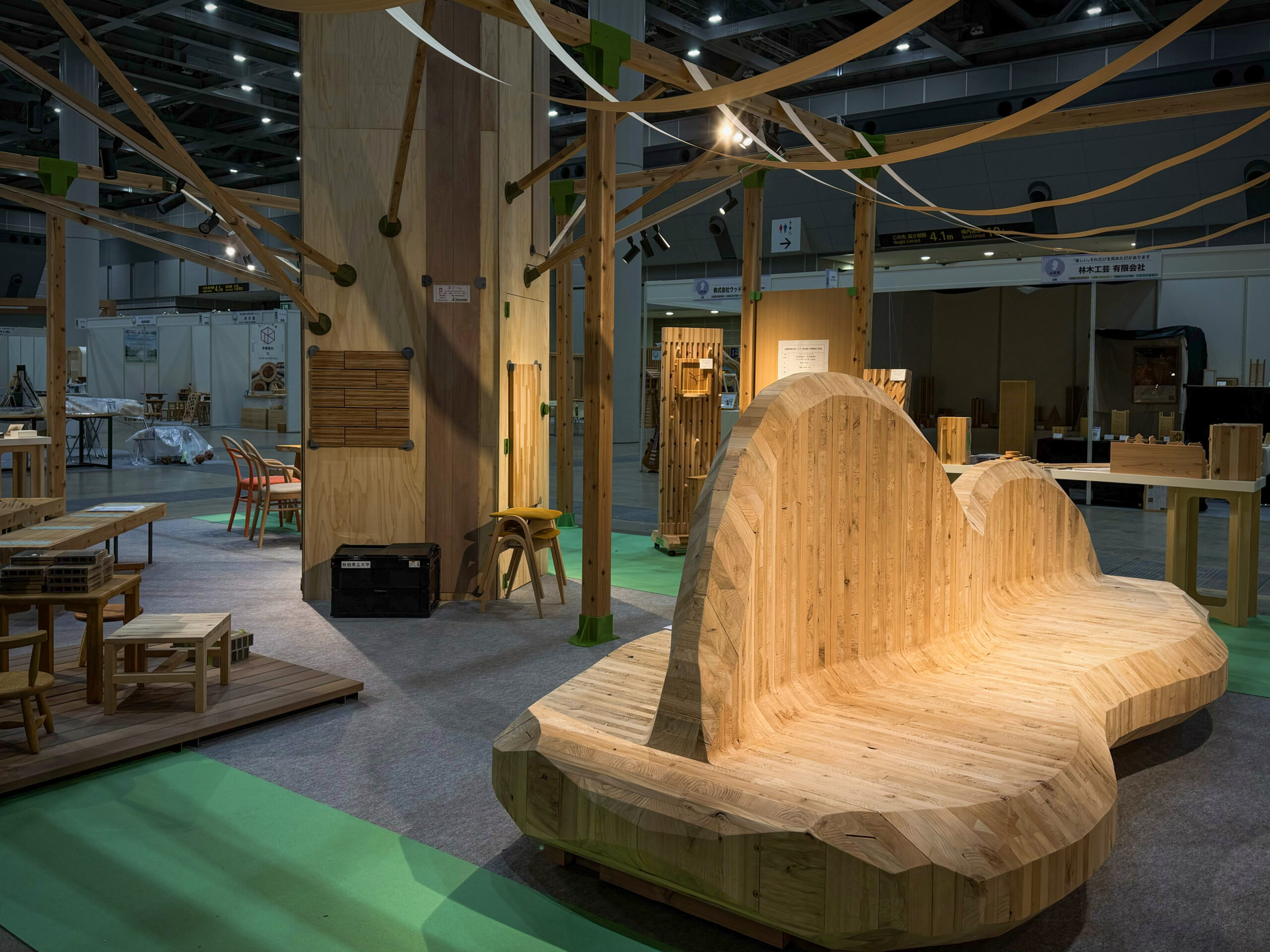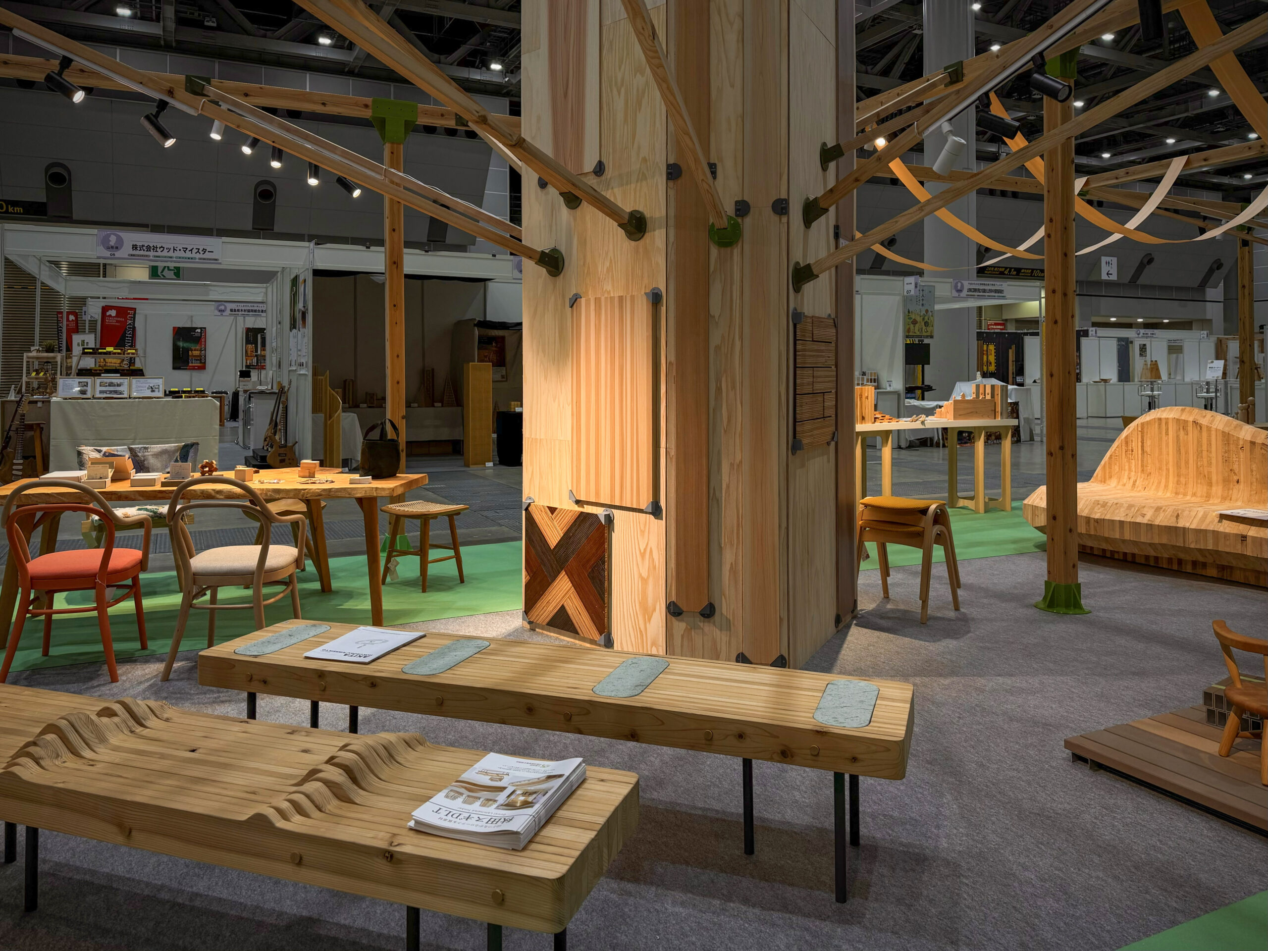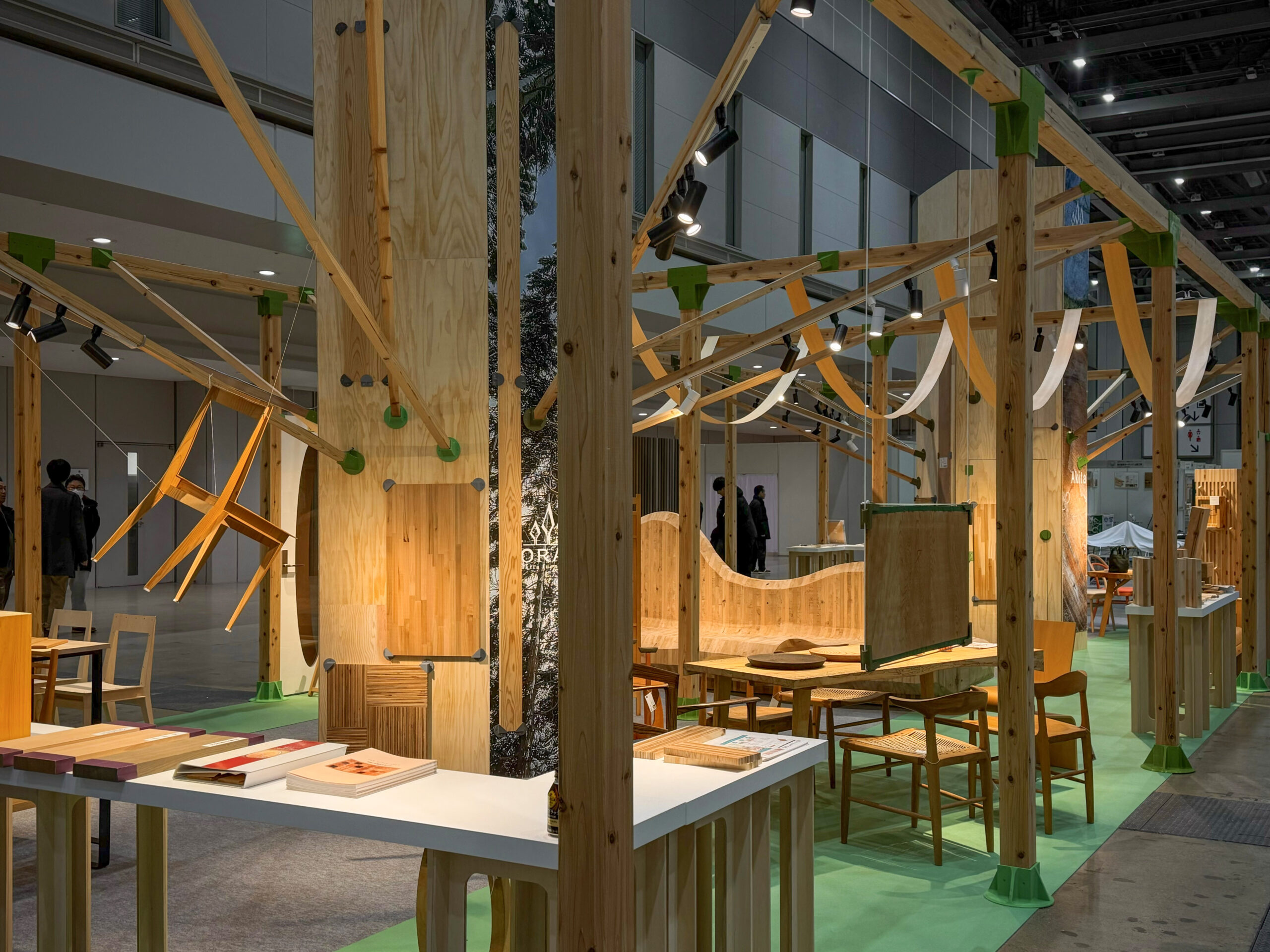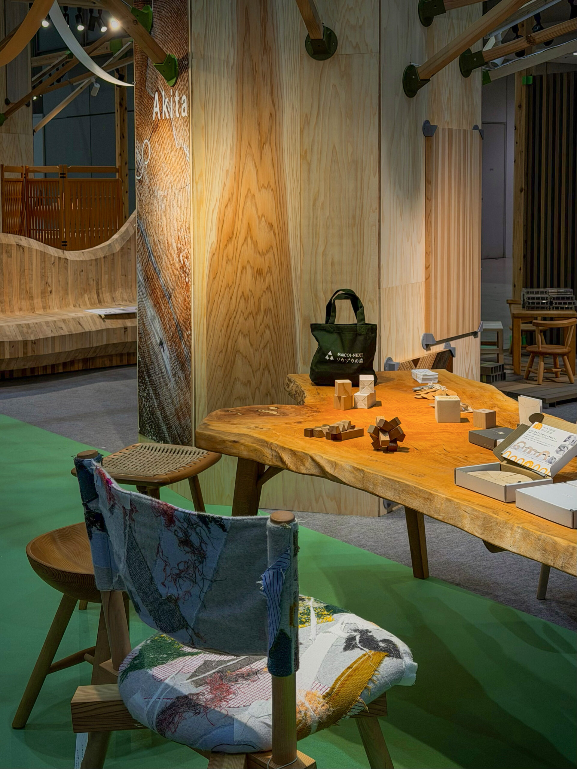 明日から東京ビックサイトで開催されるモクコレ2026での秋田県ブースの設営は、ブース躯体から建材、家具、小物に至るまでの全ての木材を秋田から持ち込み、そして川上〜川中〜川下までが一丸となり、自治体や団体、企業や大学研究機関がワンチームとなって魅力的な空間を生み出しました。